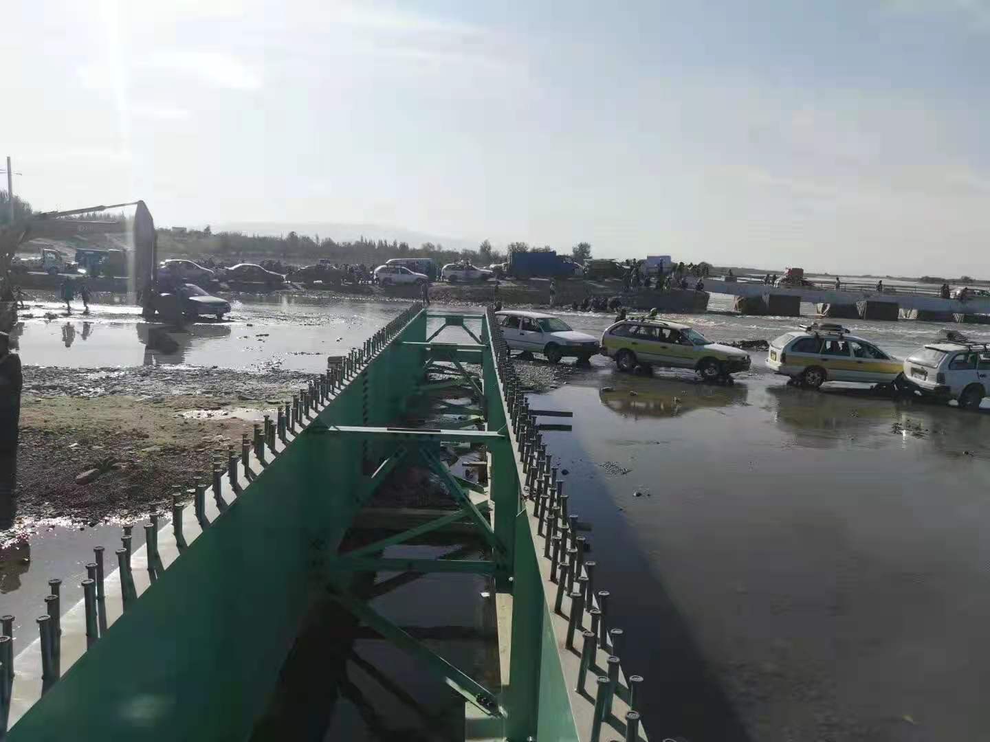 La fabrication de la structure en acier Les ponts et le guidage et l’installation sur place par les ingénieurs ont été achevés par ShanDong GuoShun Construction group co., Ltd. Situé dans la province de Kunduz, en Afghanistan, le pont a une longueur totale de 111 mètres et une portée de 5 mètres, quarante-quatre mètres de celui-ci ont été dynamités pendant les combats avec l’aide du gouvernement allemand.